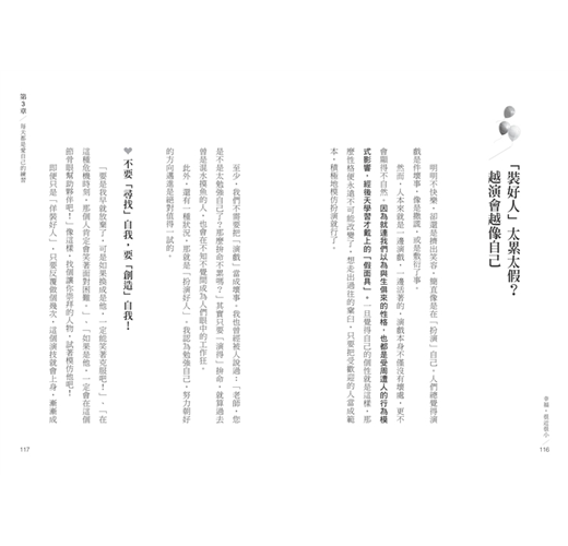 作者表示,覺得自己很討厭、很沒用,沒辦法喜歡自己的人,實在多到令人驚訝。他們無法接受原來的自己,認為必須徹底做出改變,才能重新喜歡自己。但改變自我,談何容易。