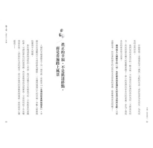 總是在內心深處靜靜琢磨幸與不幸的反論的人,才稱得上是真正的「成幸者」,然而多數人總是將「人人平等」視為常態,活在「擁有是理所當然」的價值觀中。