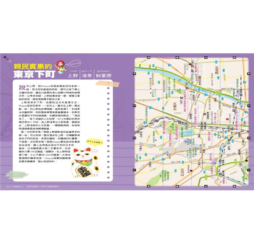 恩賜上野動物園、國立科學博物館、國立西洋美術館、湯島天滿宮、上野阿美橫丁(商店街)、淺草寺與淺草文化觀光中心、東京晴空塔 TOKYO SKY TREE、秋葉原與BOOK OFF書店、2k540藝人街、小石川後樂園、東京巨蛋、神樂版