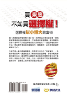 這本書的寫作,不是把選擇權的模型或是典範拿來當教科書,而是說明一個為「何」投資的來龍去脈,主要是在於演繹整個投資的想法與做法,但筆者的文筆較為洗練簡明,所以書中有些微言大意,需要讀者細看,並加以推敲,讓這些心法或做法,能夠更貼切地融入自己的投資性格與資金控管,這才是本書的重點。至於描述得不夠完善之處,也歡迎到筆者的部落格討論之。