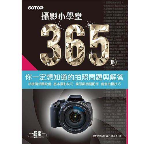 如果您喜歡拍照,卻有類似這樣滿滿的問號想要知道答案,那麼您不妨參考看看這本書。本書收集了365個攝影者最常提出的疑問,分成「相機設備」、「基本攝影技巧」、「鏡頭與配件」、「創意攝影技巧」四大類。為您回答各式各樣關於風景和人像照的基礎問題,以及有關曝光、採光、構圖等等的複雜疑問,並運用圖解範例照片清楚明白的結果說明。