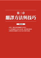 本書第一章首先介紹基礎的翻譯理論,接著第二章分析比較中英文的特徵,先掌握基本的概念後,再一一分項說明各種翻譯方法與技巧,並提供大量練習,達到理論與實務的完美平衡。