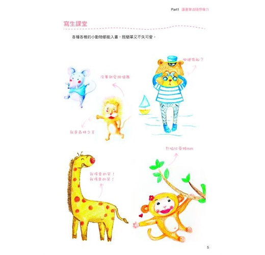 用色鉛筆獨特的溫暖筆觸,彩繪塗鴉,