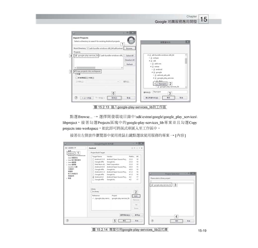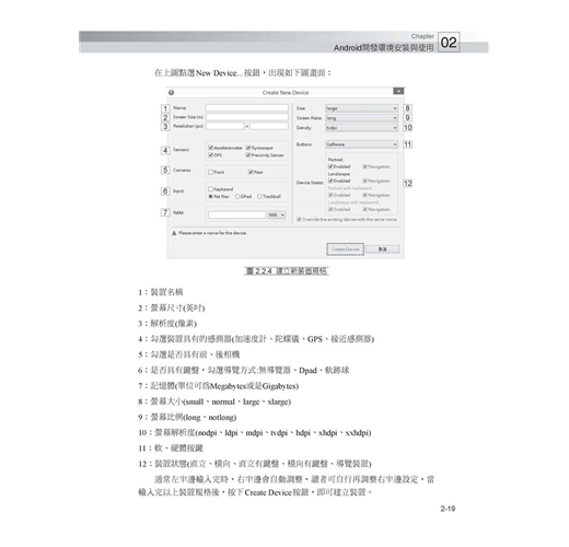 ◎涵蓋開發環境安裝與使用、圖形化介面設計與事件處理、廣播接收器、背景程式、多執行緒、資料儲存、GoogleMap服務應用開發、JSON、XML格式、片段(Fragment)、佈署APK檔、軟體佈建至實體裝置、軟體上架等重要主題