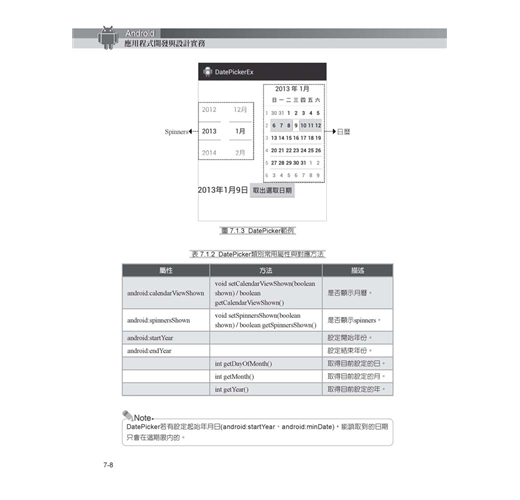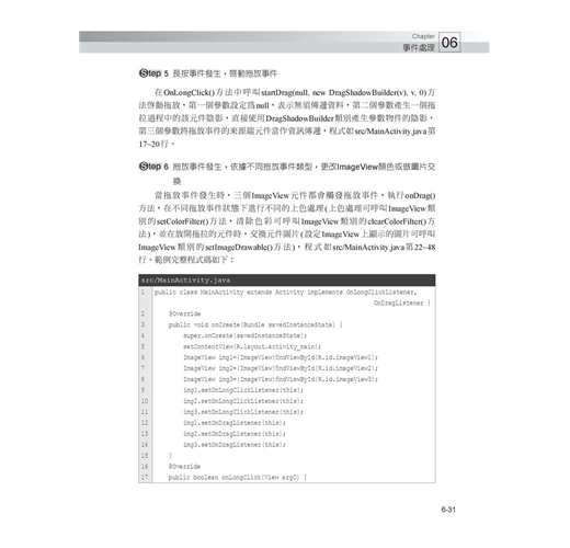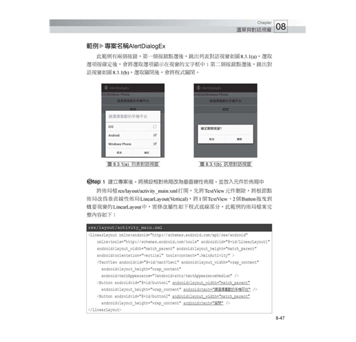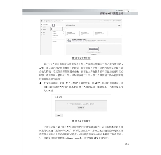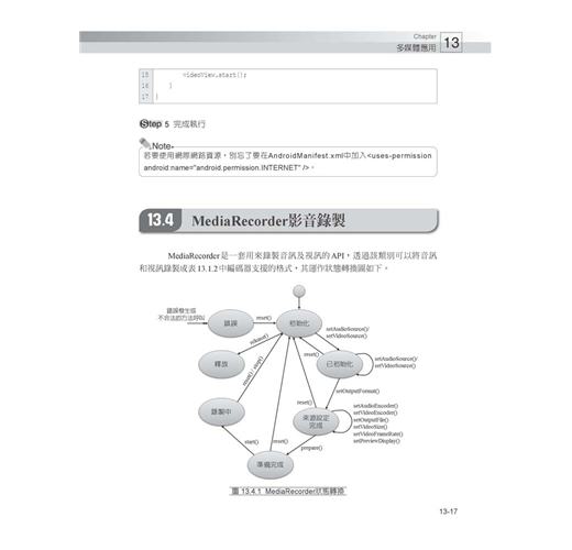 本書每章皆有操作練習或範例,供讀者熟悉與練習相關內容,較大型應用範例包含:猜數字遊戲、播放器、錄音程式、GoogleMap服務、擷取政府部門開放資料網路服務、待辦事項程式等,每個範例亦以step by step引導讀者完成專案。