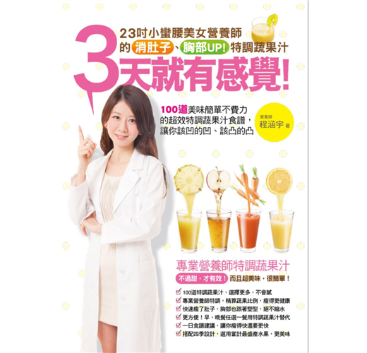 一年四季都可以喝,讓你整年都保有輕盈體態!23吋小蠻腰美女營養師程涵宇從事營養師超過6年的時間,服務過無數病患,其中有很大一部分的病患是想要改善身材的人,其中又以抱怨肚子的最多,其次為胸部。靠著專業,她幫助無數試過許多減肥方法都瘦不下來的病患成功減重,並重獲健康,而本身更是靠著自己特調的蔬果汁擁有23吋的小蠻腰。身為營養師的她,在幫病患設計食譜時,更同時會顧慮到均衡的營養,讓病患瘦得健康,現在不私藏,一口氣要公開她的蔬果汁食譜。