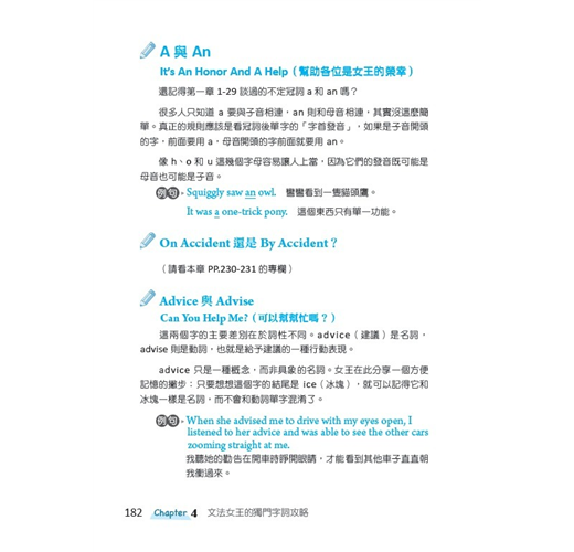 英文包含了許多矛盾的文法規則,發音相似的字彙和各種特殊條例也不勝枚舉。把深奧的規則解釋得很有趣又簡明易懂,就是我文法女王的專長。