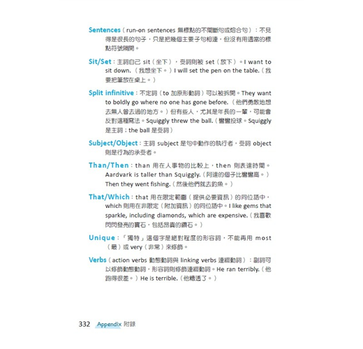 如果各位看完這本書後,發現自己竟然一頭栽進奧妙的文法世界無法自拔,或是對胡亂使用逗號、’ (省略號)用錯變得極度執迷,請不用擔心或抗拒這種反應,盡情發揮各位文法達人的潛能吧!