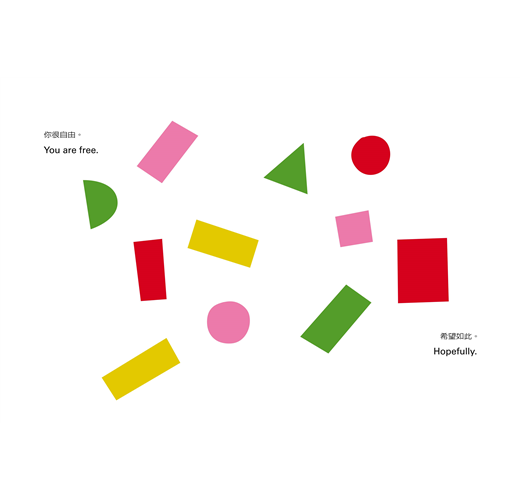 義大利資深記者雷卡多與知名平面設計師薩諾莉合作,為現代人量身打造的心靈繪本《世界屬於你》,透過簡潔卻充滿智慧的文字,搭配色彩鮮明、具象徵意義的幾何圖形,帶我們重新品嘗生命的原味。例如:書中散落各地的彩色積木,象徵著每個人都擁有自由,但翻開下一頁,彩色積木疊成的牆,卻變成我們給予自己的「限制」。如此精彩的視覺對比,讓人期待接下來作、繪者又會帶來什麼巧思?