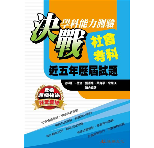 精要的歷年試題,讓您掌握複習重點,在大考中奪魁!不論您是勝券在握、或是正在加強實力的考生,本書都是您最好的選擇!迅速披露最新考情、解析直截切入要點,就在鴻漸文化《決戰學科能力測驗社會考科近五年歷屆試題》!
