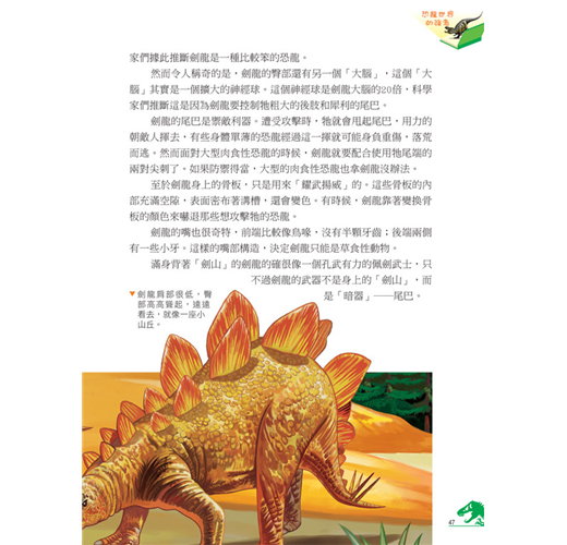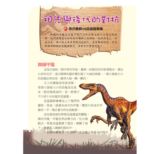 ●淺顯易懂的文字內容,在閱讀中更能記憶,並了解恐龍的奧祕
