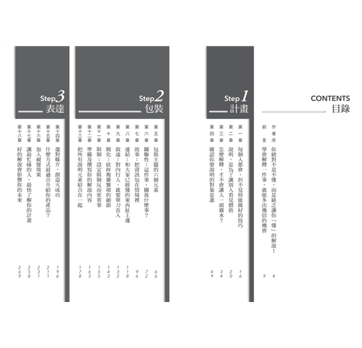本質上而言,成功與失敗的解說,差別在於影響信心。好的說明可以建立對方的信心,糟的說明則削弱甚至抹滅對方的信心。那麼,我們該怎麼辦?我們如何解決這些問題,學習藉由我們的說明來為別人建立信心呢?答案很簡單:我們要進行第一個步驟──開始計畫。