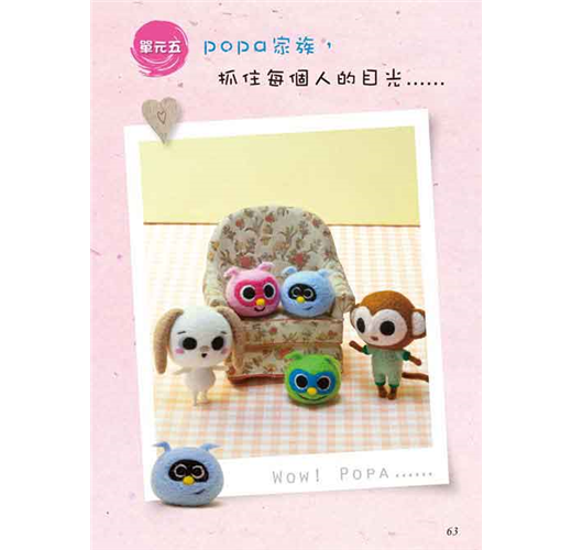 本書教大家只要以特殊的戳針來戳刺羊毛團(條),即可塑出想要的形狀,再加上逗趣的五官.適量的配件組裝,可愛的療癒小物就是你的了。各式小動物.心情小玩偶.實用小飾品.還有超夯的波帕家族成員……,哇!共29款之多就等你來塑造!