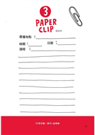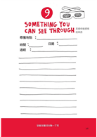 2. 按照每頁的指示找尋和收集物品,然後黏在左頁。在右頁寫上你是在哪裡收集到,並且描述發現這個物品的「故事」,即使虛構也沒關係。
