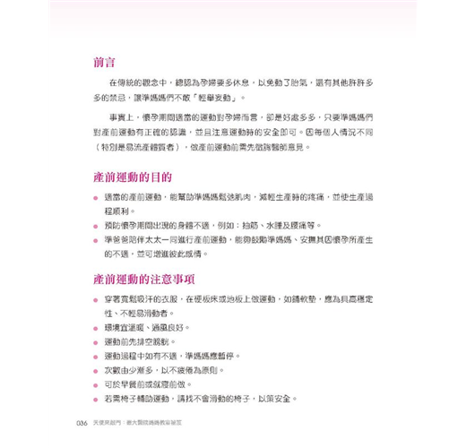 得知「懷孕」的那一刻總是令人欣喜,但接踵而來的生理變化、產前檢查、孕期及產後保健、嬰兒照護等,常常讓人手忙腳亂與心頭發慌,如果這時有一本「教科書」可以指引方向與參照,對所有的準父母而言,無疑是一種莫大的幫助與心理安定劑。