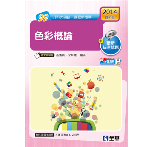 一、 本書依據教育部公布97課綱「色彩概論」考試範圍,內容針對家政群高職學生升科大四技入學之「色彩概論」考試形式編寫而成。二、 本書注重各單元之銜接性與完整性,內容符合理解易懂的要求,釐清每一章節作深入淺出的詮釋,務求成為考生之升學寶典外,亦適合高職教師教學及學生學習參考使用。三、 本書提供彩圖索引,方便參考對照,加強學習記憶。四、 本書共分六章,每章內容架構如下:1. 命題機率:根據歷屆試題命題機率,分析章節之重點等級,及常考關鍵字提醒,方便了解命題方向。2. 本章內容綱要:以樹狀表分析每章之內容綱要,使清楚掌握每章節之內容架構。3. 重點歸納:點出命題重點,利用表格及要點整理,作命題重點分析,內容豐富而完整。4. 觀念釐清:每章均依內容及升學考試方向,釐清本章容易混淆,或不易理解的部分,提示重點所在加強析解說明。5. 本章實力評量:每章均附多元而實用的超級試題,供教師出題及學生實作練習,反覆推敲試作可更理解課文內容。6. 歷屆試題:以符合每章之「歷年四技二專統一入學測驗」,分節提供考生作考前自我檢測,並逐題詳實作試題分析,幫助理解及學習上作觸類旁通之用。五、 附錄:各章重點回顧,分節作條列式說明,使教學順暢、考生閱讀輕鬆,加強每章的學習記憶。六、本書編寫力求完善,如有未盡妥善之處,尚祈先進不吝指正。