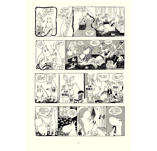 擅長以視覺發想故事的朵貝楊笙,當然也專精以漫畫說故事。由於缺少了童話系列的文字描述,「嚕嚕米漫畫」跟「嚕嚕米童話」不同,沒有詩意的大自然靜態描寫,而是以情節為重的「動作片」。畫風洗練的朵貝楊笙,以《嚕嚕米》的角色為班底,運用漫畫文類特有的誇張、荒誕的元素,編織出一個個喜劇色彩濃烈、劇情緊湊、惹人笑聲連連的故事。喜歡嚕嚕米童話角色的小朋友和大朋友們,大可關掉「教誨」、「寓意」與「詮釋」的理性之窗,欣賞著漫畫中角色豐富、逗趣的表情,跟著嚕嚕米一家去冒險,盡情享受熱鬧、多變、天馬行空的情節。