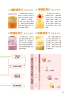 ●蔬果汁一覽表:對各章蔬果汁進行系統整理,並具體呈現食療功效,附上頁碼以便於查詢