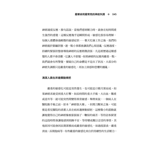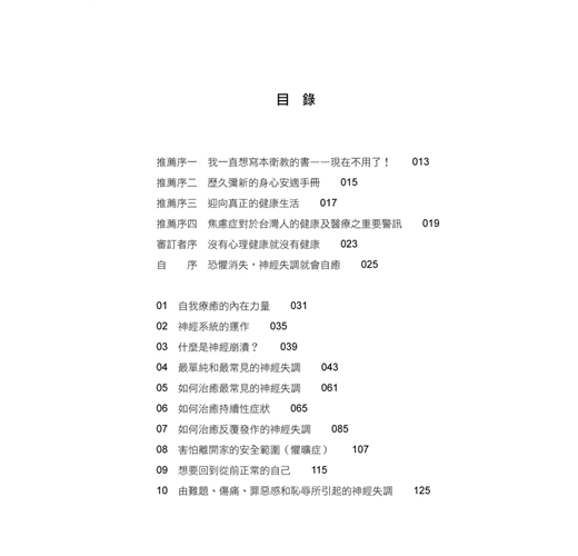 對於關心自身與家人身心健康的民眾,以及正苦於神經失調與崩潰的人,推薦您這本好書。