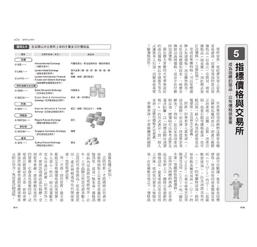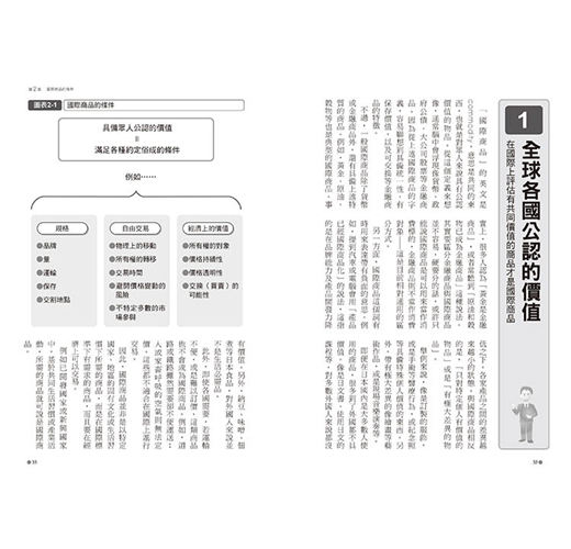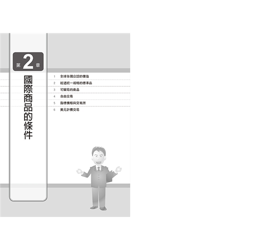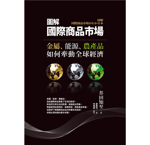 《圖解國際商品市場:金屬、能源、農產品如何牽動全球經濟》從基礎的「交易」知識開始,說明國際商品的定義與價值,並按類別舉出數十種國際商品,簡單說明它的背景和產地,並且對目前的市況和未來的潛力,作一通盤的介紹。讓讀者能快速掌握各種產品在世界的趨勢,方便在投資時做出精準的判斷。而並不打算投資的人,也可從國際商品的動向,了解世界各地經濟波動的原因,進而對未來世界的潮流,有明確的方向。不論在商場或個人生活,都是十分有用的趨勢工具書。