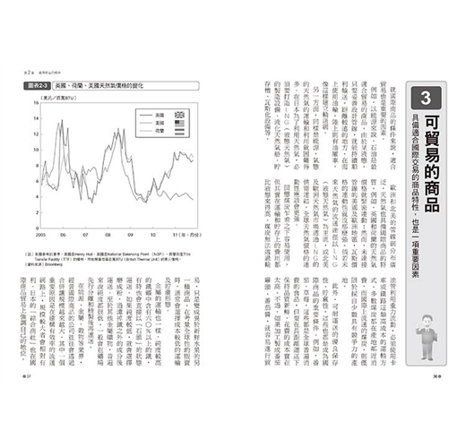 雖然目前號稱天然氣熱潮,但價格並沒有上漲太多。原因是美國持續推動非傳統型的天然氣資源,也就是頁岩氣。自雷曼衝擊到景氣逐漸恢復的二○○九年之後,WTI等原油市況的上漲和天然氣市況(美國亨利港)相較之下,呈現一進一退。