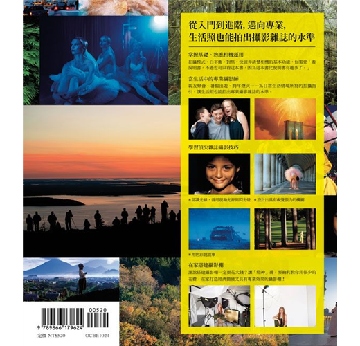 不論你要拍的是風景、人像,或者生命中的重要時刻、親友相聚的美好時光,總是有些情況會讓覺得:「我一定要捕捉到這幅畫面!」或者「絕對不能錯失這精采一刻!」那可能是夕陽沉落的瞬間、家人的笑容,也可能是寶寶學會站立。這時,我們都希望自己就是專業的攝影師,啪啪啪俐落地按著快門,拍出想像中的理想畫面,把眼前的時刻化為永恆。要做到這一點,你不一定要跟在攝影師身邊當上好幾年助理,或付上一次兩萬多元的高昂學費參加工作坊,你只需要一本夠好的書,以及── 永遠不怕拍不好的心。