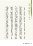 除此之外,每一段禪宗故事之後,加上「禪機新語」與「延伸閱讀」,讓讀者在汲取禪宗智慧的同時,不忘舉一反三,將禪的觀念、禪的方法能在現實生活中進行實踐與體會,真正學以致用,為繁忙緊張的都市生活減壓,並尋找心靈出口。