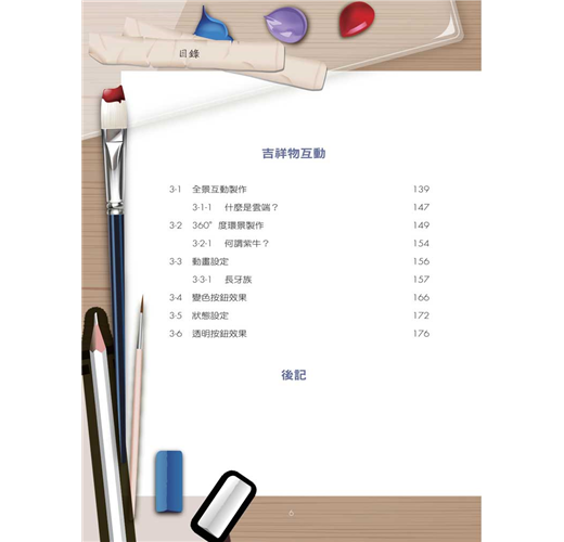 無論是否有無數位繪圖的基礎,皆能透過本書的引領,讓有心從事電腦創作的人,了解自己應選擇何種軟體輔助,進行角色的創作,最後再應用於互動載具上。透過輕鬆簡易方式呈現的吉祥物範例,帶領讀者跨越2D平面與3D立體設計工具與思維之間的藩籬,自在悠遊於設計的發想與實作領域中。