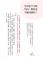 本書並非單純的教養手冊,作者針對東西方教育進行多年觀察,統整利弊得失。如果您「用心」閱讀體會,相信在教養子女的路上應會更加平順。