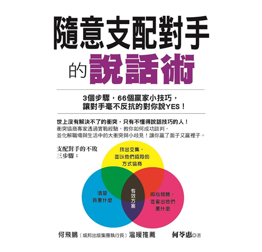 除了「支配對手的不敗三步驟」外,我還列舉了無數實例,並提供66個與人成功溝通的小技巧。當你在談判、協商過程中,適時的運用這些步驟與技巧,你將讓你的對手會覺得他們的意見被聽到、想法被了解,最後達成互惠互利的協議。你不但贏了面子,也贏了裡子。