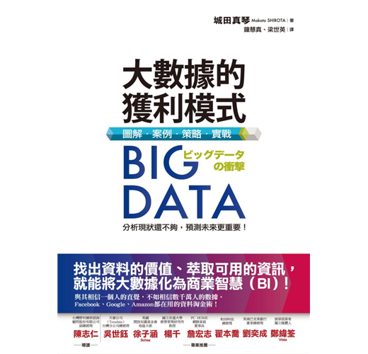 這本書是我在東京總公司的同事城田真琴的著作,在日本,這本書出版於2012 年7月,2013年陸續出版韓文版、簡體中文版與繁體中文版,是巨量資料領域的重要著作。我認為,這本書內容能讓台灣的讀者有機會看見全球發展「巨量資料」的全貌。