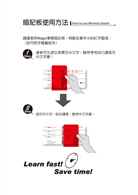 本書最大的特色之一,是藉由新技術『Magic學習暗記板』(請見書內附件)以自然反射快速學習的方式,訓練見(英文)字即懂的能力。