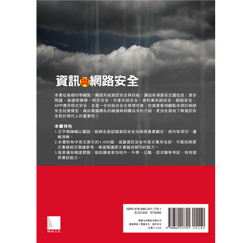 2、本書附有中英文索引約1,400個,涵蓋資訊安全中英文專用名詞,可幫助與原文書籍