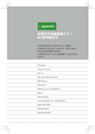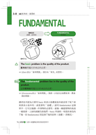全書嚴選60個在商場上常用來表述個人立場的單字,並以漫畫式的插圖輔佐,比對意思相近的單字,讓讀者能快速地掌握精準的用字。舉例來說,『我們正面臨了一個重大問題或困難』這句話,許多人在翻譯時都習慣翻成: