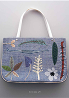 具有光澤感的絲質塔夫綢搭配各式繡線及珠子的大型包包、把類似北歐紡織品般的圖騰融入造型當中的和風布包、運用的緞帶紗毛線製成的刺繡小手袋……