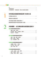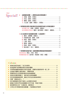 收錄依食材分類的蔬果汁索引,詳列每款蔬果療效以及營養成分,並標出食譜頁數,方便讀者查詢。