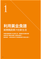 設計多種實用蔬果食譜,包括:從週一到週日的黃金食譜,以季節分類的當季食譜,以及以蔬果顏色分類的能量食譜。