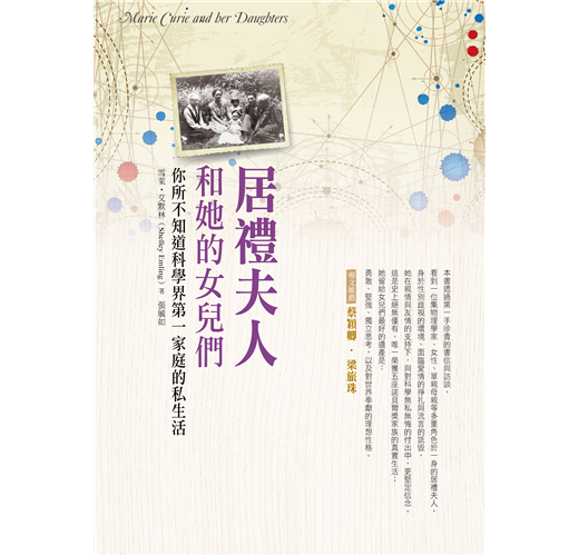 童年讀本特地為小讀者簡化的「居禮夫人」生平故事,是以「科學家」與「女性」這兩種相互輝映,與史上無人曾及的得獎成就所交織而成的觀照,成長後,我又陸續讀了不同時間出版,更為完整的「居禮夫人」傳記。這本書,則是從居禮夫人兩個女兒的生平與她的第三代,來了解這位被孩子深愛的母親。書成的時候,居禮夫人的小女兒已以一○二歲的享年過世了,雖然她曾說過對自己的長壽感到不安,但也許更多人會希望,這是上天補足了她母親與姐姐為科學奉獻的人間歲月。這兩個女兒在世上完整的履歷,足以說明一個母親的信念如何地被傳承下來,那才是我們所經常提到,家庭教育真正的美好與力量。