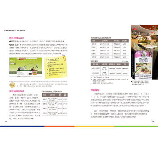 不過現在學弟妹們有福啦!彥雯老師出版的這本超實用的工具書,相信可以讓你去韓國遊學更事半功倍,或許有人會說,遊學的資料在網路上找就有啦?但是網路的資料非常零散,還要花許多時間找尋,而這本書集結了所有知名語學堂的特色,還有關於韓國生活的大小事,甚至連申請學校、找房子、食衣住行等各種問題,都能讓你迎刃而解喔!