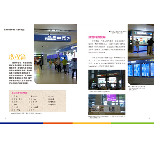 從選擇學校到新生入學、機票比價、住宿、交通、飲食、申辦外國人登錄證、辦手機、剪頭髮……所有你會遇到的韓國在地生活疑難雜症全收錄,讓你在韓國生活不用擔心食衣住行問題,開心快樂遊學去!