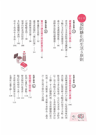 2. 提供讀者各種正餐、點心與飲料「抗糖化食譜」,附上插圖讓人躍躍欲試。