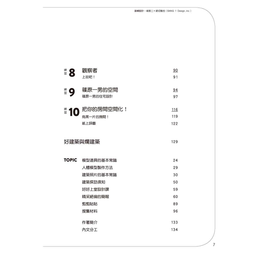 對於建築有興趣,但還沒開始進一步學習專業知識的讀者們,歡迎掀開本書。本書內容依據我們在東京理科大學的理工學院建築系上,為了學生所設計的課程「空間設計與練習I、II」。這些不久前還在為了大考拼命的孩子,剛上大學所面臨的第一個挑戰,便是這門課。我們希望能藉此讓剛接觸建築的孩子充分領略到建築的樂趣。這門課如今已經教了十年左右,應當足以成為讀者們認識空間的入門課程。建築是門牽涉許多領域的學問。想興建一棟實際的房子不但要花很多錢、要能夠耐震、顧慮到地球環境,甚至還得考量到無障礙空間。因此建築師什麼都要懂,所學永無止境。在這麼多重要的事情中,最要緊的其實是去體驗各種空間。雖然當你體驗過了許多空間後,不見得一定會走上建築之路,不過少了這些體驗,你很難挺過建築師起起伏伏的專業生涯。