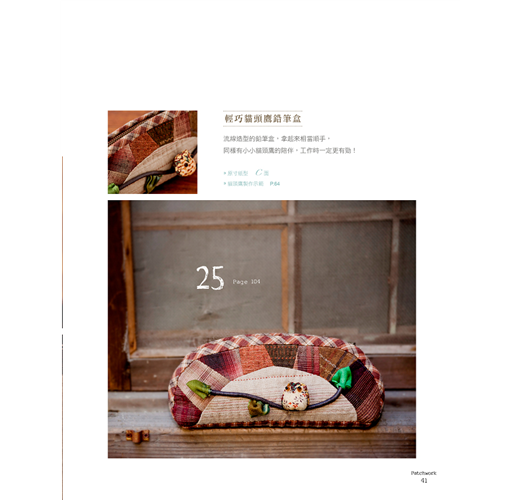 有別於以往的布包創作,書中貼心收錄了秀惠老師設計的迷你貓頭鷹、柿子、零錢包、立體布花,造型可愛,作法簡單,附有詳細的解說及示範教學,十分適合初學者入門製作。