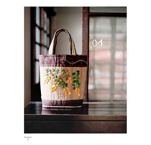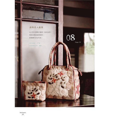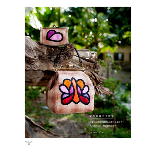 這本書還是著重在花的貼布縫和刺繡,應用在不同的袋型,也會呈現出不同的感覺,如果初學者想學,可以由小作品起步,例如小貓頭鷹或柿子或零錢包……如果小作品能勝任完成,再作大一點的作品,希望每個喜歡拼布的朋友,也能和我一樣,享受拼布帶給我們的樂趣。