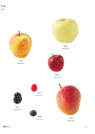 蘋果、柳丁、檸檬、奇異果、草莓、芒果、香蕉…每種水果都有完整及剖面兩種圖片。