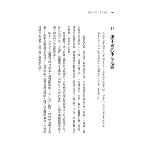 走過生離死別,參悟生命實相,面對生死,不迎不拒。於是,時時可死,步步為生。