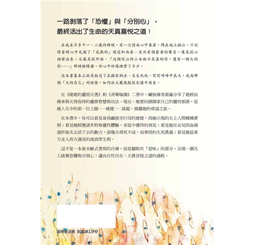 在本書中,你可以看見身為藏族空行母的姥姥,為她示現的天上人間種種實相;看見她經歷諸多特殊靈性體驗,並從中獲得的洞見;看見她在女兒因血癌過世後失去活下去的動力,卻幾次尋死不成,而參悟的生死真義;看見她從東方走入西方遇見的流浪眾生相。
