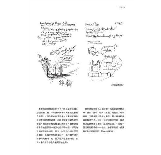 ※ 藉由設計師、建築師的多樣化視覺筆記,引導讀者要如何「觀看」事物、如何「感覺」事物。