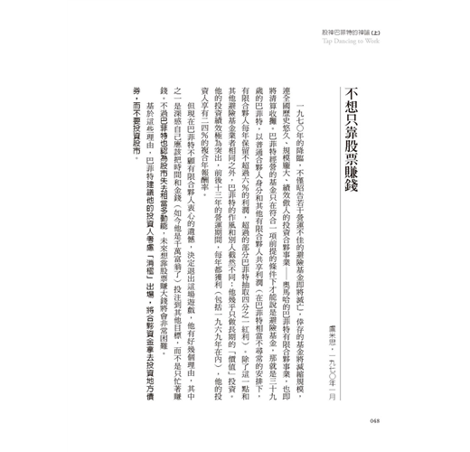 下冊1999-2012年,給投資人與世人的幾堂課,以及自述有所為、有所不為的投資哲學。