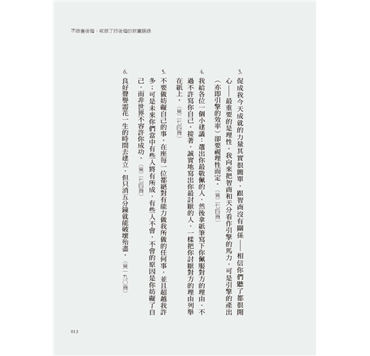 他的開示非常與眾不同:「別做妨礙自己的事。」「促成我今天成就的力量其實很簡單,跟智商沒有關係——最重要的是理性。我向來把智商和天分看成引擎的馬力,可是引擎的產出效率,卻要視理性而定。」